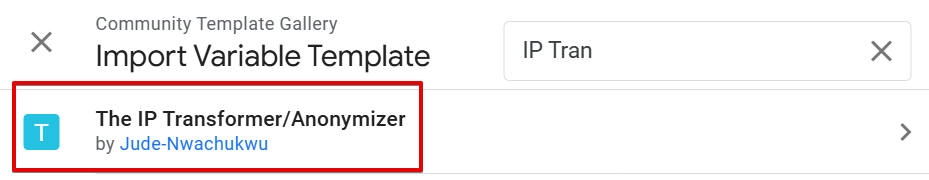 In the community template gallery, search for the “IP Transformer/Anonymizer” variable template.