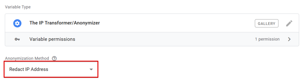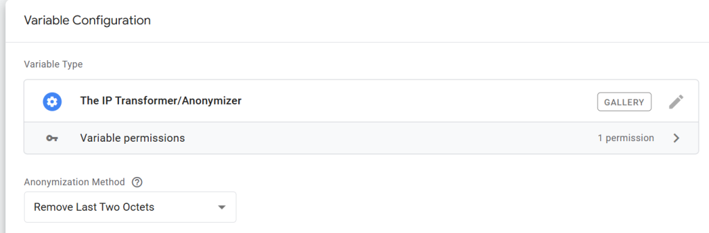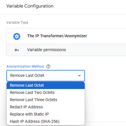 The “IP Transformer/Anonymizer” variable template provides enhanced flexibility and powerful options for managing the collection and transmission of IP address data to ads/analytics vendors within your sGTM setup.