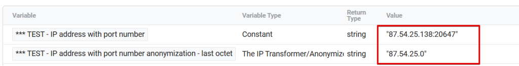 It’s important to note that the “IP Transformer/Anonymizer” variable can process IP addresses that include port numbers (e.g., 87.54.25.138:20647).